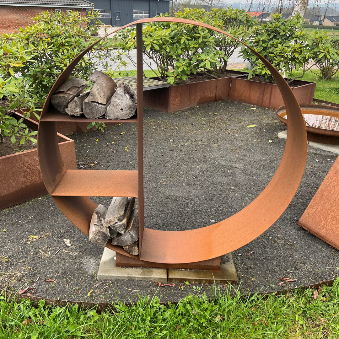 Rund brændeskjuler – Corten-Ø150
